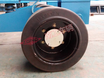 3.拖车采用压配式轮胎,承重能力强,承重平台低,拖车通过性能佳;