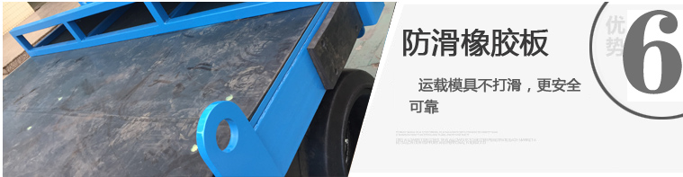 本开云·(kaiyun)官方网站适用于工厂、码头、仓库、物流中心等物流周转运输,特别适用于模具周转,开云·(kaiyun)官方网站承重35吨,平台铺20MM厚橡胶板。拖车本身无动力,可用5吨叉车、50KN牵引车牵引。